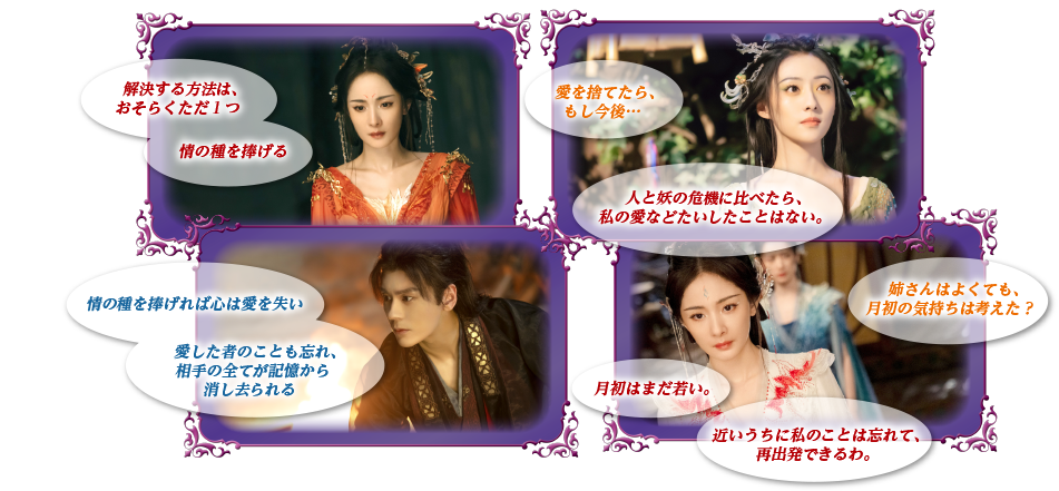 狐族が暮らす塗山の現当主。妹たちと力を合わせ、狐族を争いから遠ざけ平和を保ちながら、塗山に根づく“苦情樹”の力を通じて、世の想いを感じ取り、妖たちの縁を結んできた。幼い東方月初を助けて以来、16年にわたり彼の面倒を見続けている。次第に芽生えた月初への想いと、塗山の平和を守るという使命との間で葛藤する。